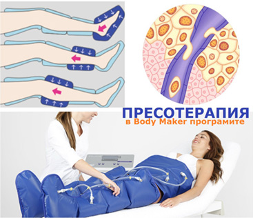 Пресотерапията е модерен, ефективен и безболезнен метод със силен терапевтичен ефект за лечение на целулит и мастни натрупвания по тялото. Активира пасивната част на кръвообръщението – вените и лимфните съдове, стимулира дренажа на натрупаните токсини към прочистващите органи.